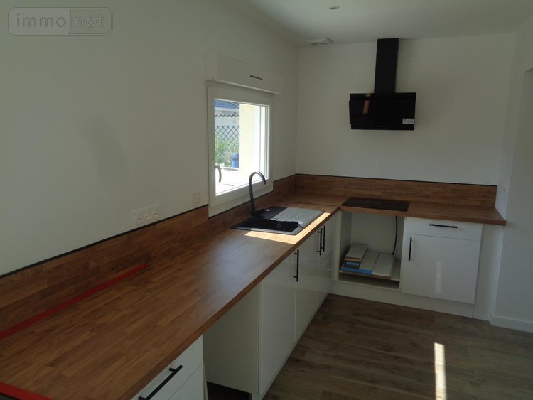 Elle se compose au rez-de-chaussée d'un salon-séjour ouvert sur une cuisine équipée et d'un cellier
