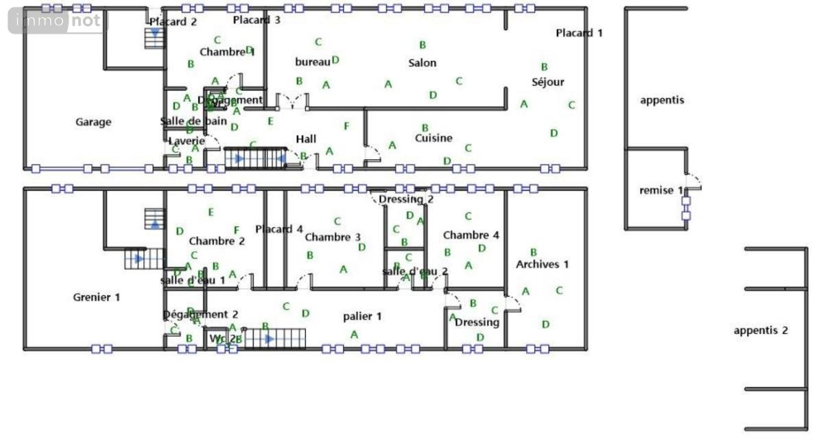Informations relatives au diagnostic de performance énergétique : Consommations énergétiques (CE) Classe E indice 326 kWhEP/m²/an et émissions de gaz à effet de serre (GES) Classe B indice 10 kgéqCO2/m²/an.