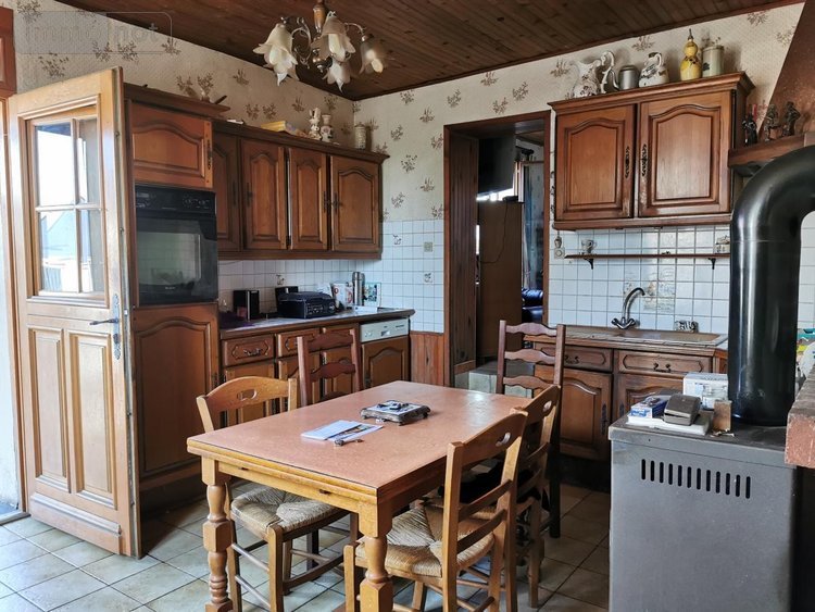 - chauffée au gaz de ville (chaudière à production d'eau chaude) et au bois (poêle dans la cuisine) ;