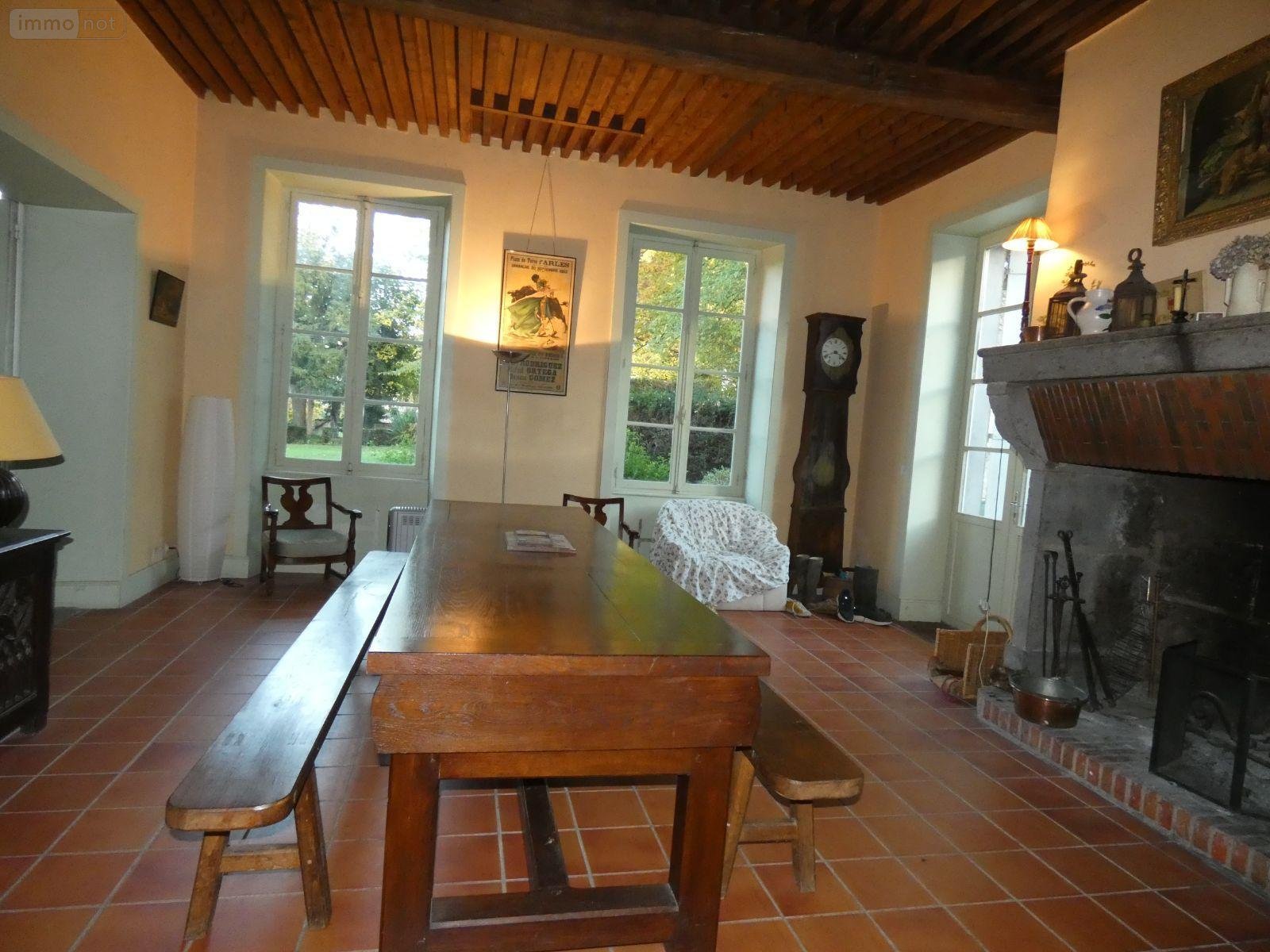 A vendre dans le PUY DE DOMES, à 20mn au Nord de CLERMONT FERRAND AUVERGNE RHONE ALPES et 10 mn autoroute A71, dans un joli parc arboré d'environ un hectare et demi, (comportant quelques essences d'arbres rares), maison de maître familiale du XVIIIè siècle, (1789), en partie sur caves composée au rez-de-jardin, hall, cuisine, salle à manger, garde manger, 4 grands salons, bibliothèque, salle de douche avec WC. A l'étage, dégagements, 8 chambres dont 4 avec cabinet de toilette et une avec lavabo. Salle de bains avec WC. Au 2è étage, grand grenier complet sur toute la surface d'environ 210m². (Travaux à prévoir : installation d'une nouvelle chaudière, (la plomberie et les radiateurs sont en place), passer des fenêtres en double vitrage, mise aux normes assainissement collectif, (notamment pour les cabinets de toilette), remplacement du liner de la piscine qui a une trentaine d'années, etc...). Ancienne petite chapelle attenante au logement familial. La propriété compte également une ancienne écurie attenante à une grange. Piscine (10m x 5m) et jardin arboré. Ancien chemin d'accès privatif longeant la rivière Morge, fermé côté route départementale. Plans cotés disponibles lors d'une visite. Prix de vente 595 000 EUR dont Honoraires de Négociation charge acquéreur 3.51% du prix net. Renseignements, visites Office Notarial MONTAGNON 04.73.25.80.40 et/ou 07.69.47.35.08