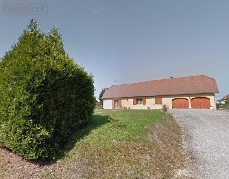 A VENDRE MAISON A SAINT-USUGE (dpt 71) - A 5 minutes de Louhans, située en impasse, maison de plain-pied composée d'un couloir desservant une cuisine équipée, séjour-salon avec cheminée, 3 chambres, salle d'eau, wc séparé, grand garage double attenant. Les plus : installation récente pompe à chaleur+climatisation et 2 portes de garage récentes et motorisées. Petit dépendance séparée. Terrain : 2082 m2.
