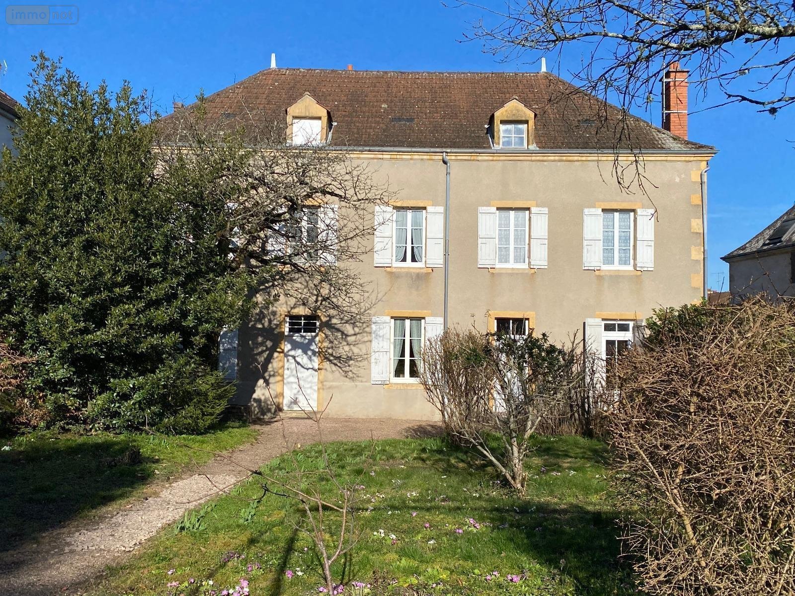 Maison de maître en pierre, à vendre à Paray-le-Monial en Saône-et-Loire (71) - Venez découvrir cette propriété de caractère, située à proximité du centre ville, datée de 1877, sublimée par un jardin entièrement clos d'un muret en pierre, laquelle est élevée sur caves, de deux étages; Au rez-de-chaussée surélevé, vous découvrirez deux entrées en façade, idéal en cas de profession libérale par exemple, un salon-séjour traversant, une cuisine, trois pièces, un WC; A l'étage, accessible via un escalier en bois, quatre (4) chambres, une salle de bains avec WC ; Cet étage se compose en outre, d'un appartement de 40 m² environ, libre à ce jour, avec un accès indépendant, lequel comprend deux pièces avec sanitaires; Cet appartement pourrait facilement communiquer avec le surplus de l'habitation; Au dernier niveau, un grenier; Petites dépendances dans le prolongement du terrain avec un garage indépendant; N"hésitez pas à me contacter pour une visite