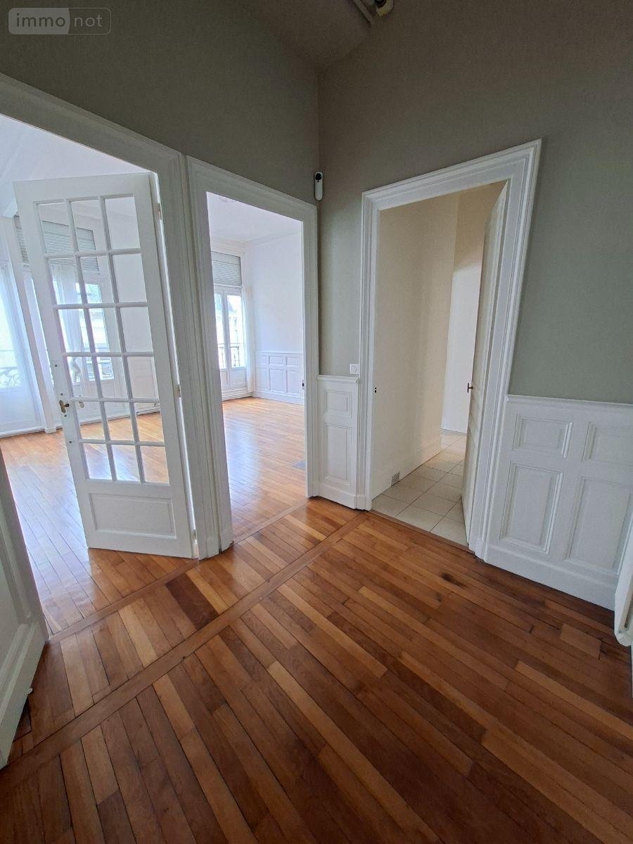 Appartement rénové de 116m² - 2eme étage - comprenant grande entrée, pièce de vie de +40m² très lumineuse avec cheminées, cuisine aménagée, salle d'eau moderne, 3 chambres, parquets d'origine, cave - chauffage individuel gaz - faibles charges 45EUR/mois