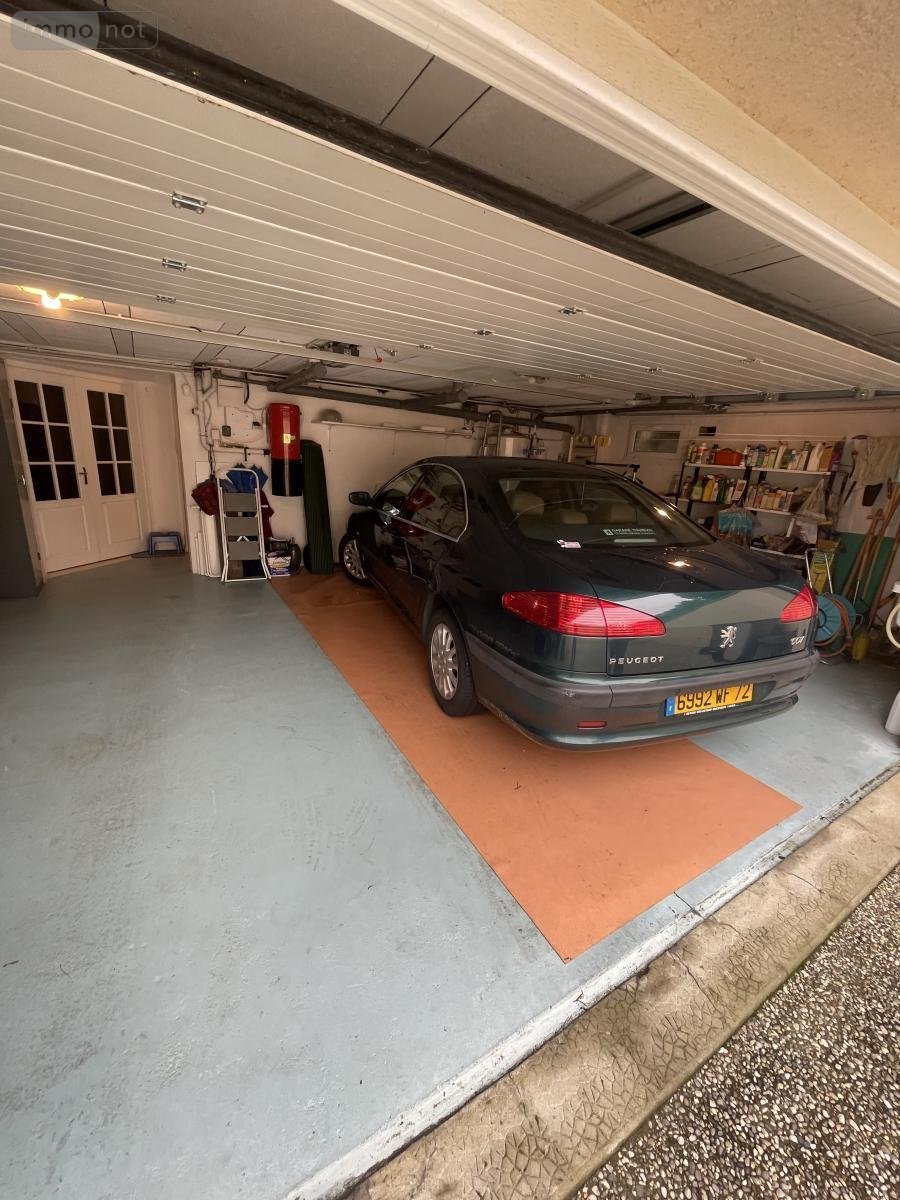 au sous-sol, garage avec porte motorisée, cave, atelier.