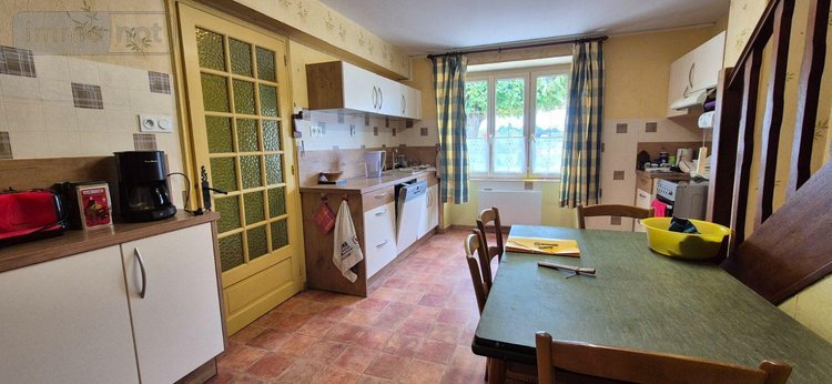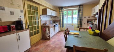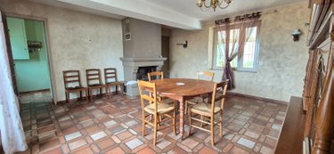 Au rez-de-chaussée : Entrée sur dégagement, cuisine, salon / séjour avec cheminée insert (tubée), salle d'eau avec WC, véranda, débarras.