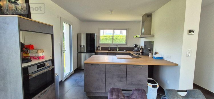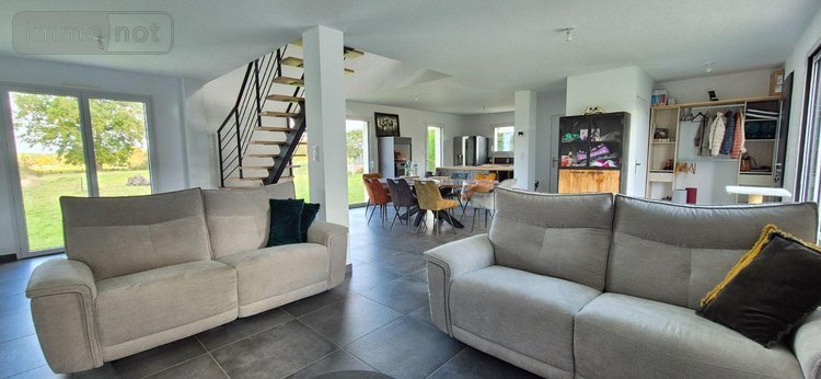Au rez-de-chaussée : Cuisine aménagée et équipé ouverte sur le salon / séjour (50 m²), buanderie / chaufferie, WC.