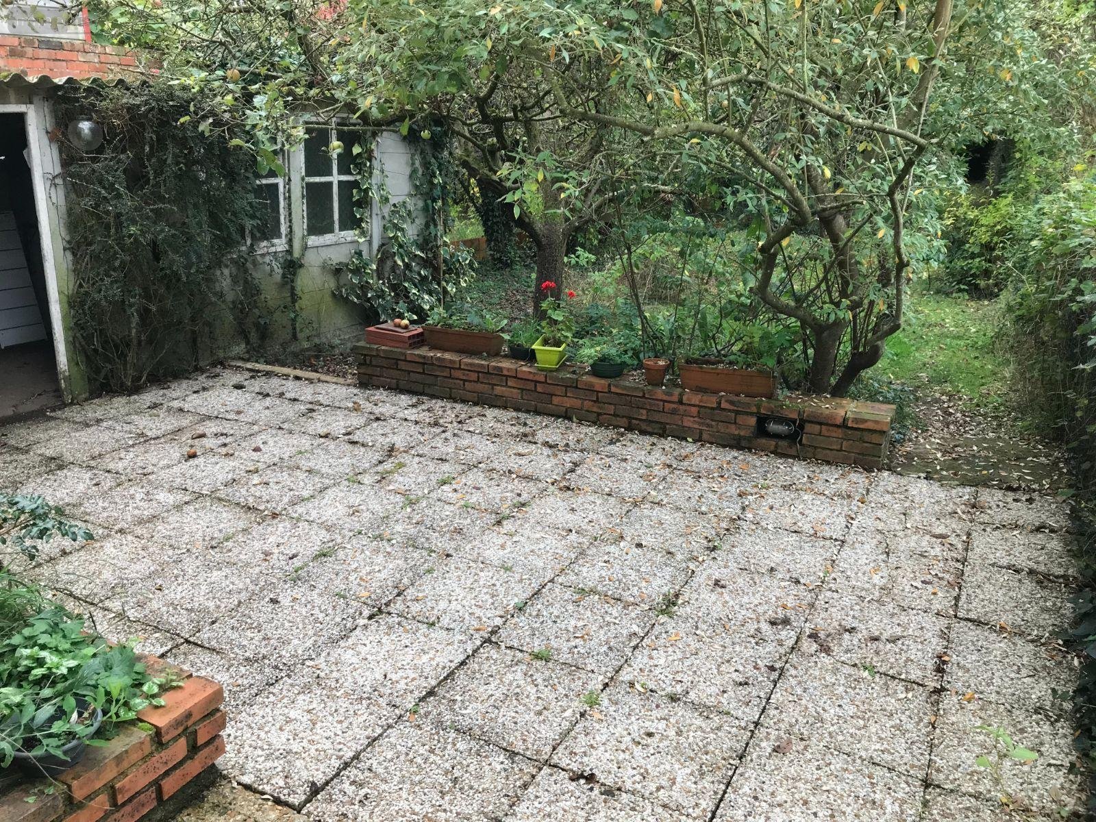 Terrasse et jardin avec un accès qui donnent directement sur le bord de la Sarthe.
