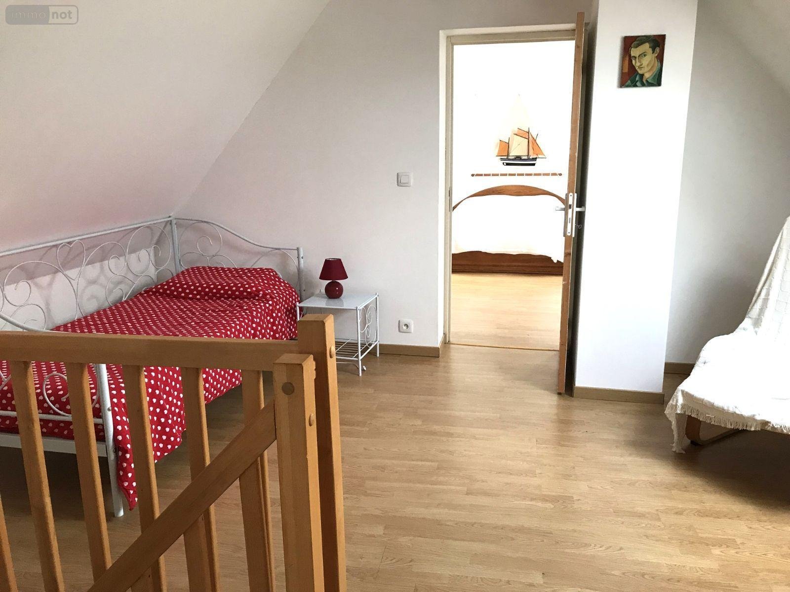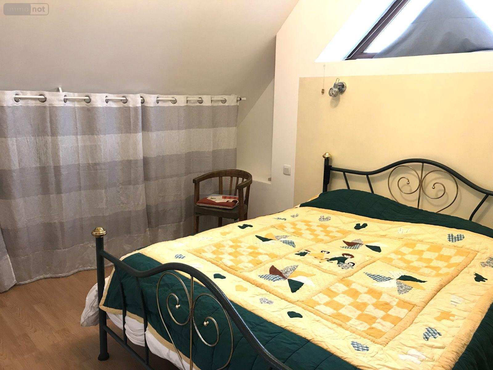 Au premier étage : deux chambres, une salle de bains avec WC.