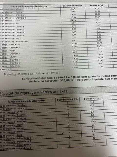 This 340 m² house is set on 9658 m² of land. The property comprises 12 rooms in total, including 7 bedrooms. The living space is laid out in such a way as to offer numerous layout possibilities. The layout allows a large number of people to be accommodated and a variety of living spaces to be enjoyed.