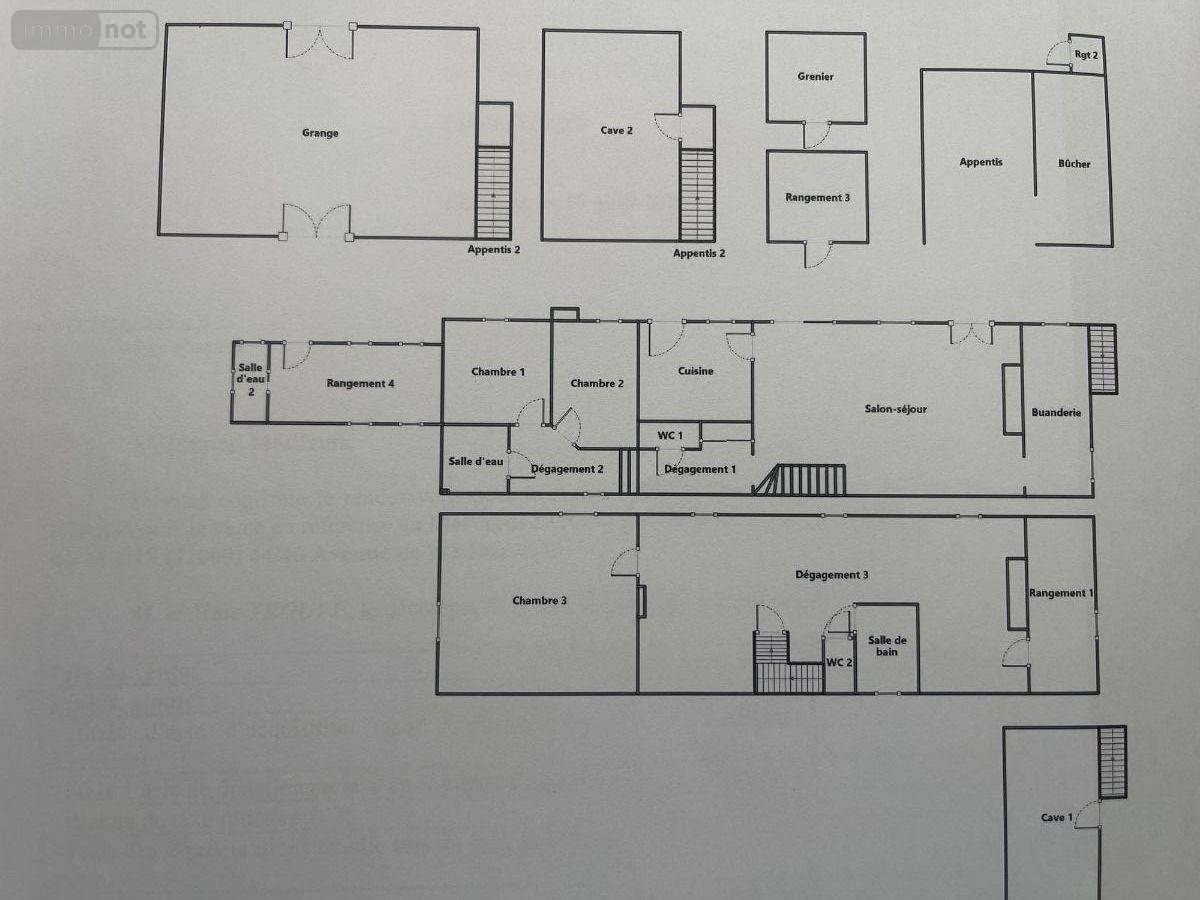 BOULOIRE (72440) en Sarthe. Maison à Vendre avec studio indépendant et dépendances. Cette maison (proche des commodités du bourg) a une superficie habitable de 125,36 m², pour une surface au sol totale de 170,97 m² . Elle est située sur un terrain de 8354 m². MAISON COMPRENANT au rez-de-chaussée, : Séjour/salon (34,92m²) avec cheminée (insert), Cuisine (9,55m²) aménagée (et équipée), Arrière-cuisine/buanderie (7,69m²), Couloir (avec placard), desservant Deux chambres indépendantes (9,18 et 9,56m²). Salle d'eau (douche et vasque). WC. A L'ETAGE : Mezzanine (surface au sol de 46,24m² pour 18,98m² habitables)+ Salle de bains (baignoire et vasque), WC. Chambre (surface au sol de 27,92m² pour 17,61m² habitables). Débarras. Cave sous partie. STUDIO (En coté de la maison, et de plain-pied ) COMPRENANT: séjour et salle d'eau avec WC). DEPENDANCES : Grange (pouvant accueillir un camping-car), cave sous partie. Hangar avec partie bucher. Cabanon de jardin (construction en briques). Eléments de confort et informations diverses : Le bien est en bon état général. Chauffage par radiateurs électrique + cheminée insert. Assainissement collectif.