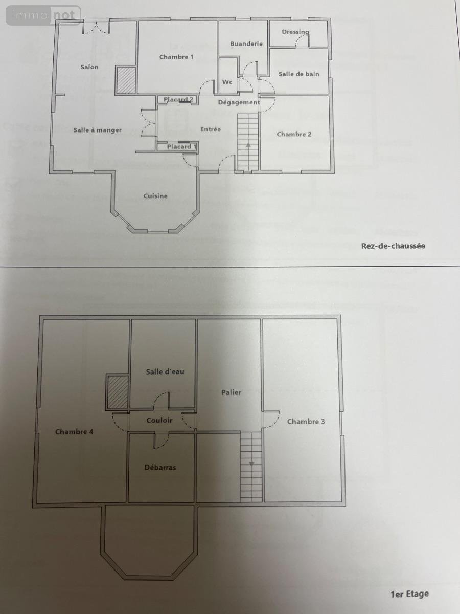 Maison à Vendre à Loir en Vallée (72340) en Sarthe (72). Ce pavillon, sur sous-sol complet, se situe en c?ur de village dans un lotissement résidentiel. Sa surface habitable est de 144.17 m² pour 285,04m² de surface au sol totale. Le terrain (clos) mesure 933 m². Le pavillon comprend 4 chambres dont deux de plain-pied, offrant ainsi un espace de vie adapté à une famille. La distribution des pièces permet une utilisation fonctionnelle de l'espace. PAVILLON COMPRENANT : Entrée avec rangements (12,35m²), Espace de vie regroupant dans un même volume un Salon (16,21m²), une Salle à manger avec cheminée (18,26m²) et une Cuisine aménagée (11,70m²) . Une Suite parentale est composée d'une chambre (12,88m²), d'une Salle de bains avec baignoire, douche et double vasques (7,20m², Accès à la fois Independent et communicant avec la chambre) et un Espace dressing (2,63m²) . Une Seconde chambre (12,61m²). WC indépendant, et Buanderie. A L' ETAGE : une Pièce palière (9,43m² au sol) donne accès à deux Chambres indépendantes (22,07m² et 31,04m² au sol !!!), Salle d'eau (avec WC suspendu), Débarras. EN SOUS SOL : Garages (35,17 et 47,89m² au sol, Buanderie (13,66ml²) et Cave (9,3m²)
