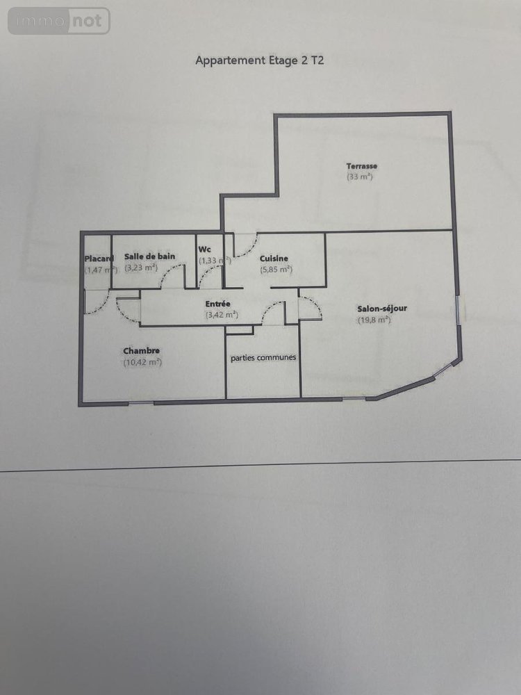 AU DEUXIEME ETAGE : Un APPARTEMENT DE TYPE 3 (T3) d'une superficie habitable de 45,52m² (loi carrez) avec TERRASSE (33m²)