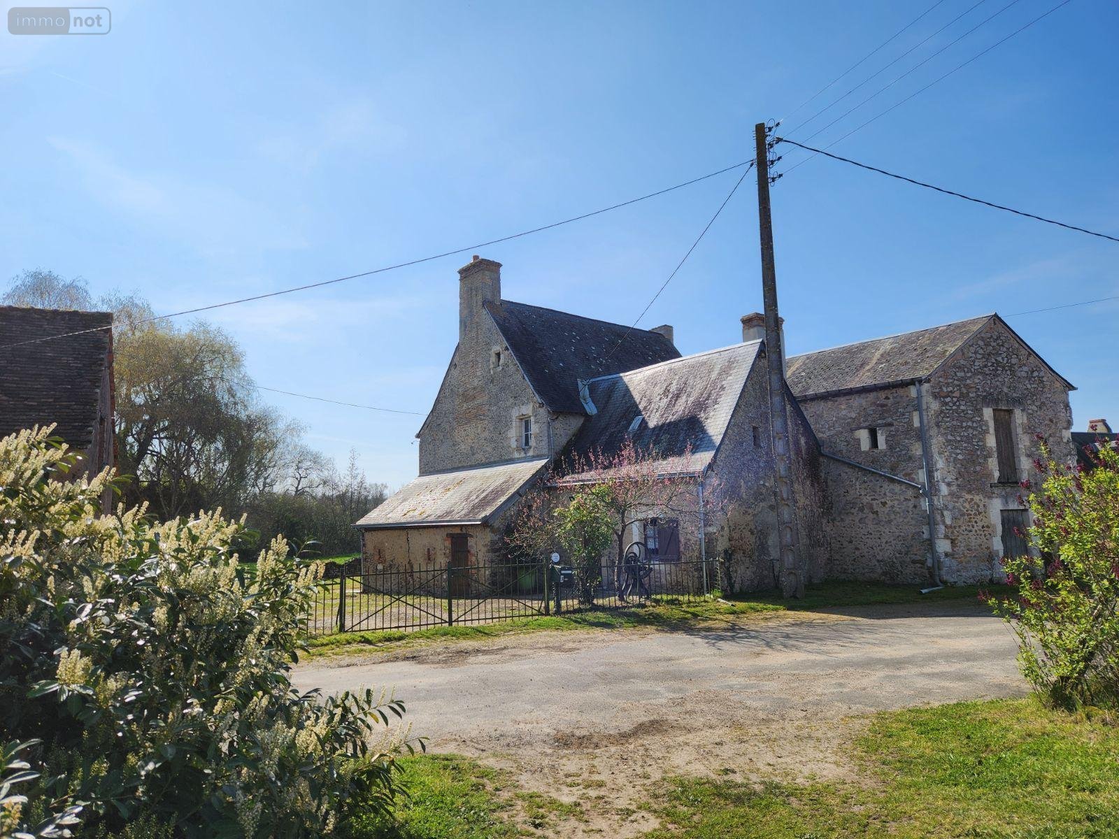 - Grange, hangar, garages, cour et terrain de 2 ha donnant sur Le Loir