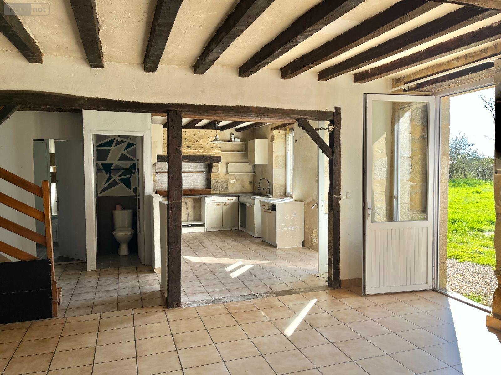 Fermette en campagne avec dépendance comprenant au rez-de-chaussée : une entrée, un salon-séjour avec cheminée, cuisine, chambre, wc, salle d'eau.