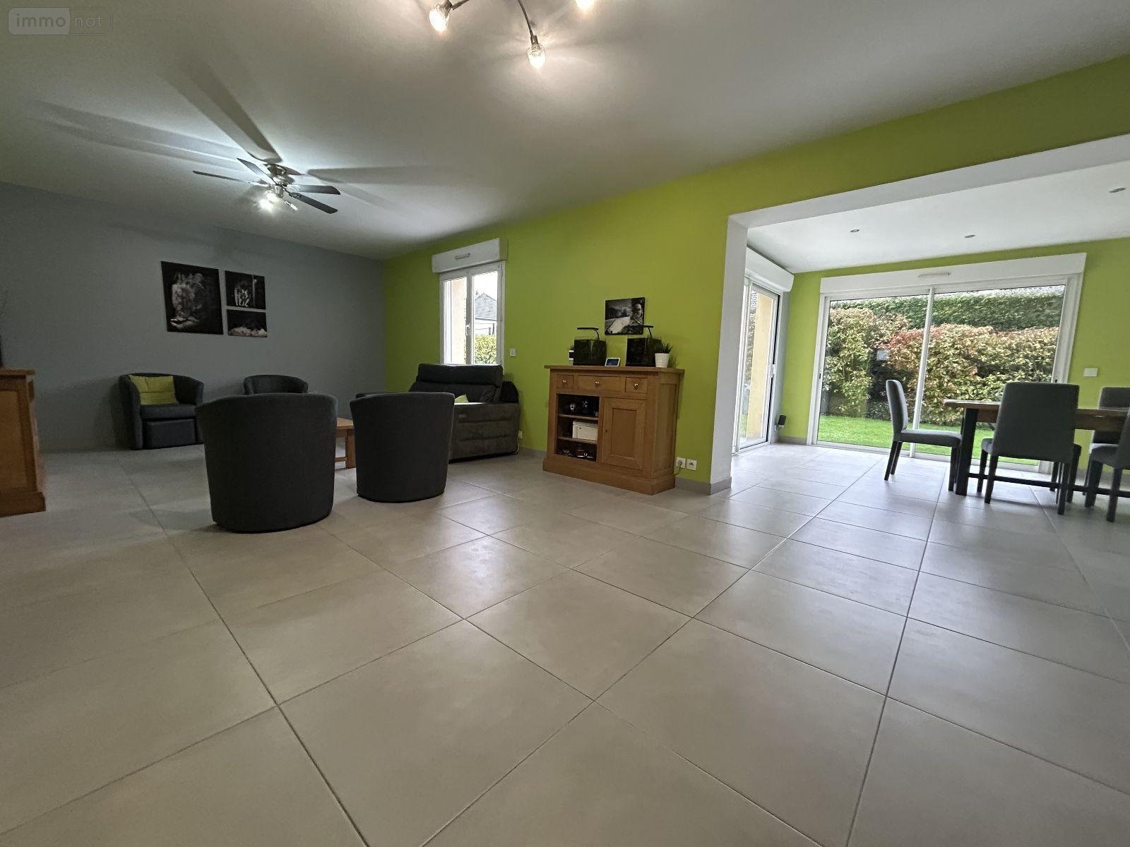 LA MILESSE - MAISON 4 chambres comprenant au rez-de-chaussée : entrée, chambre avec salle d'eau, séjour, salle à manger, cuisine aménagée, WC. A l'étage : palier, trois chambres, salle de bains avec WC et buanderie. Grenier au-dessus. Terrasse, jardin et abri. Garage avec porte sectionnelle motorisée. Chauffage au sol par pompe à chaleur et électrique.