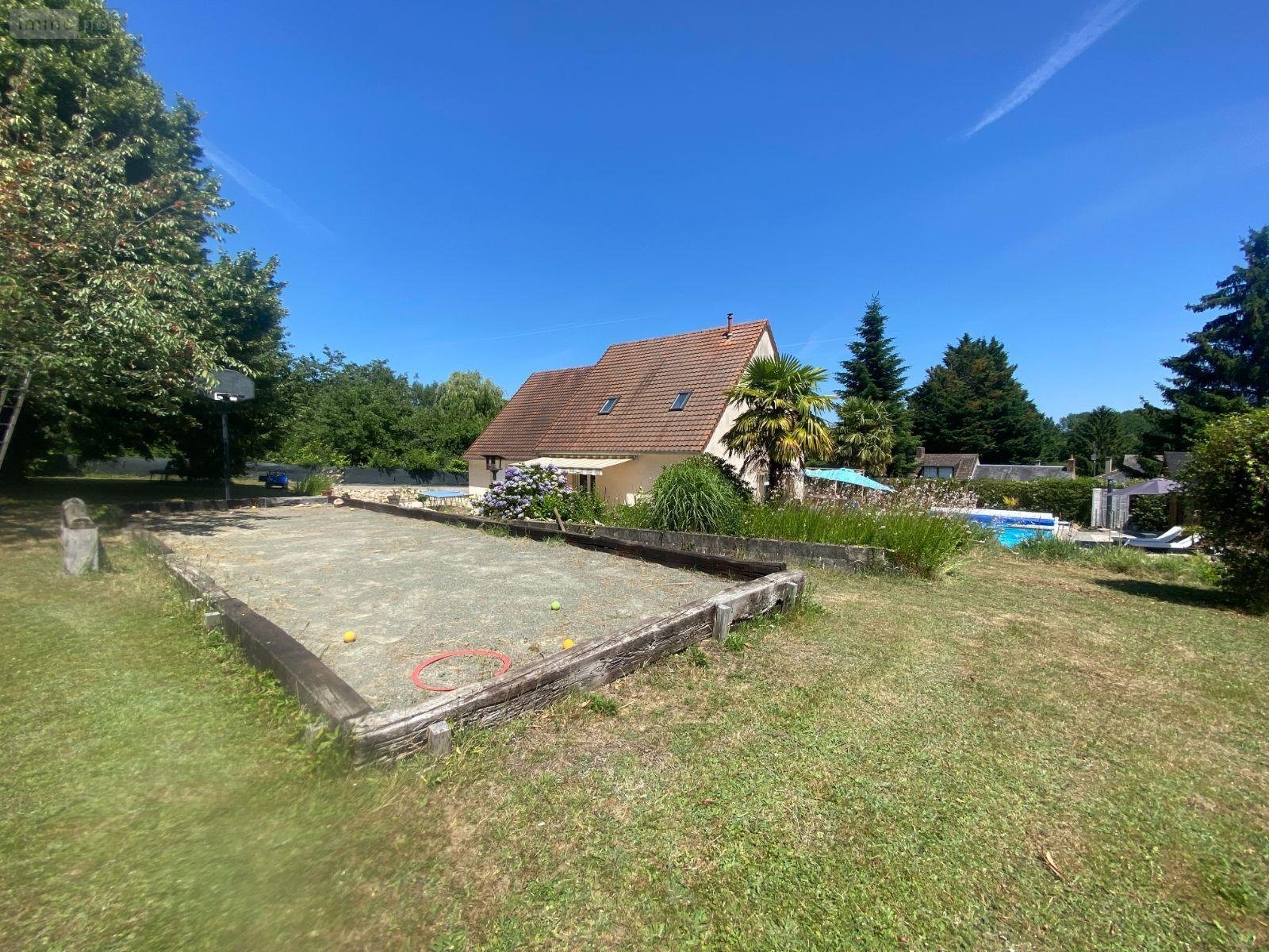 La maison est également dotée d'un double garage attenant avec grenier, d'un abri de jardin, d'une piscine avec local technique, et d'un terrain clos avec cour.