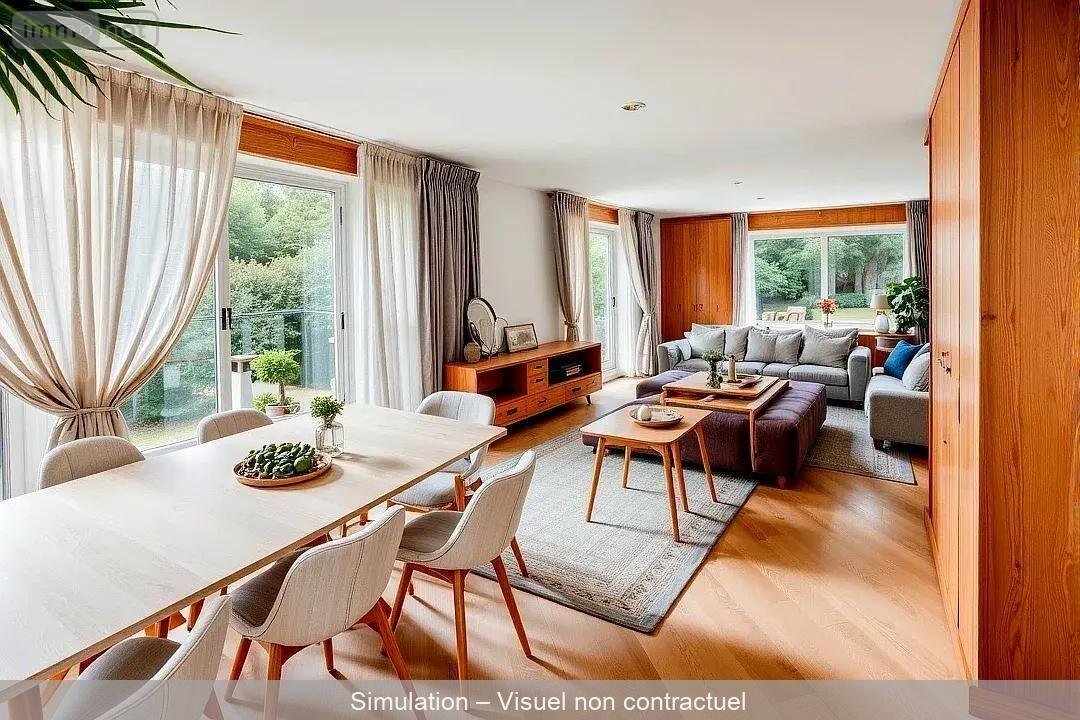 Entrée ouverte sur un vaste séjour, cuisine aménagée et équipée, trois chambres dont 2 avec dressing, salle d'eau avec douche à l'italienne et WC suspendu ( + buanderie et placard) , salle de bains avec baignoire balnéo, WC