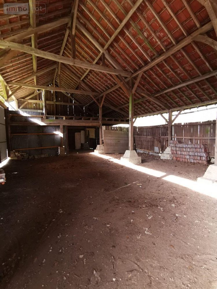 * hangar de environ 150m² (sol terre battue, ossature bois, bardage bois ou parpaing, toiture tuiles mécaniques, portails en acier et bac acier)