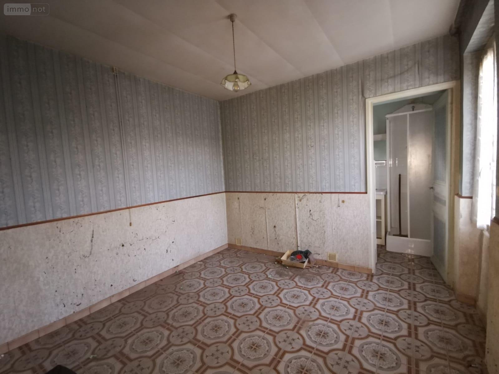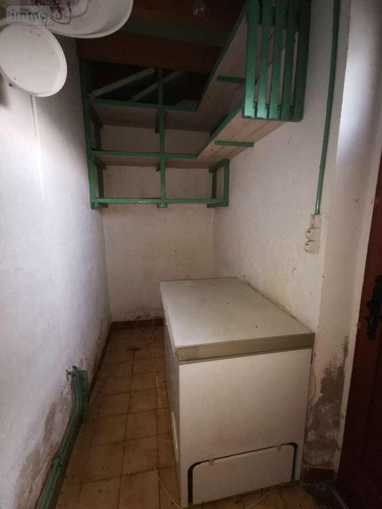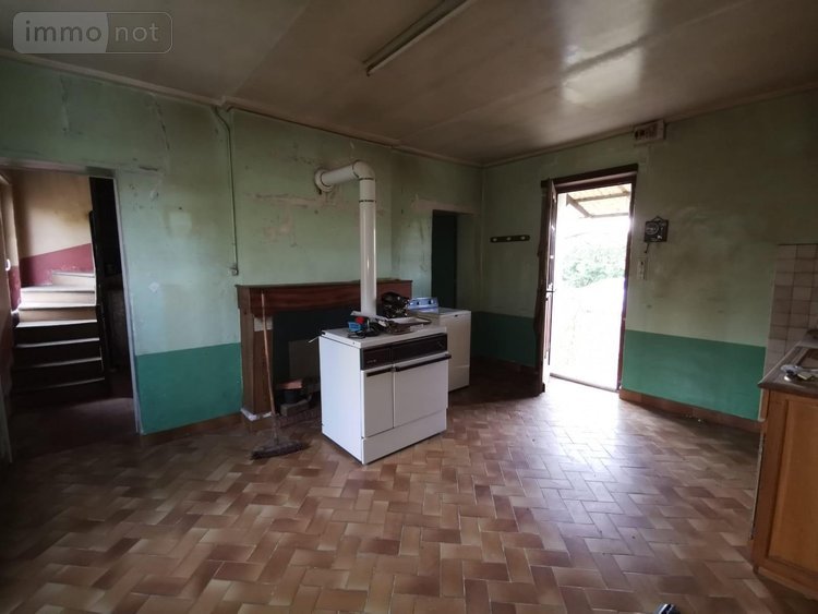 L'entrée donne sur une cuisine avec un poêle à bois ( chauffage de la maison), une chambre (ou un salon), un cellier sous l'escalier ,une salle d'eau avec son wc