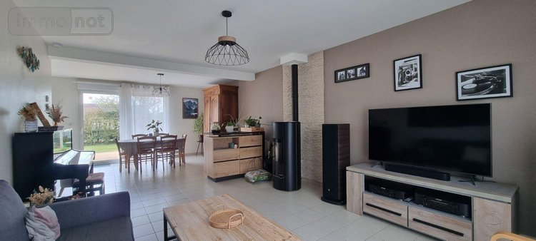 Au rez-de-chaussée, vous trouverez une entrée avec placard, un salon - salle à manger lumineux équipé d'un poêle à granulés, une cuisine aménagée et équipée, ainsi qu'une buanderie. Une chambre permet une vie de plain-pied, WC indépendant. Un double garage complète ce niveau.