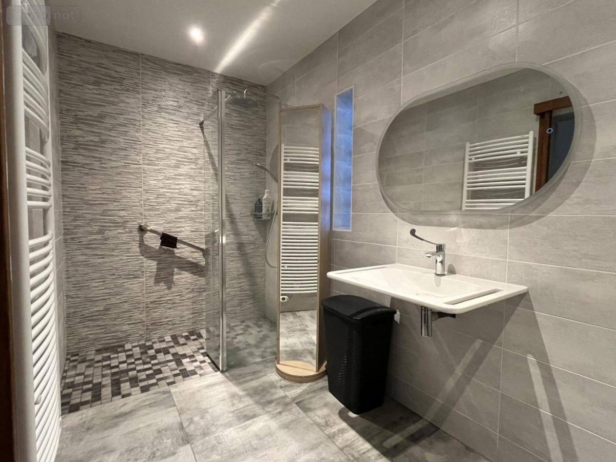 Elle dispose d'un grand séjour de 35m2 avec poêle à granules, une cuisine ouverte aménagée et équipée, une salle d'eau.