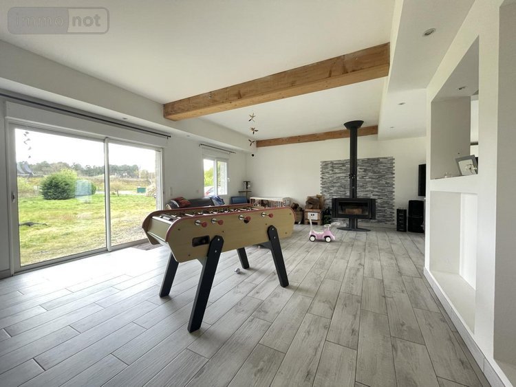 L'intérieur fonctionnel et spacieux est composé : d'une entrée avec placard, séjour-salon avec poêle à bois d'env. 55 m² ouvert sur la cuisine aménagée, 2 chambres avec sdb privatives, WC PMR et une buanderie-dressing.