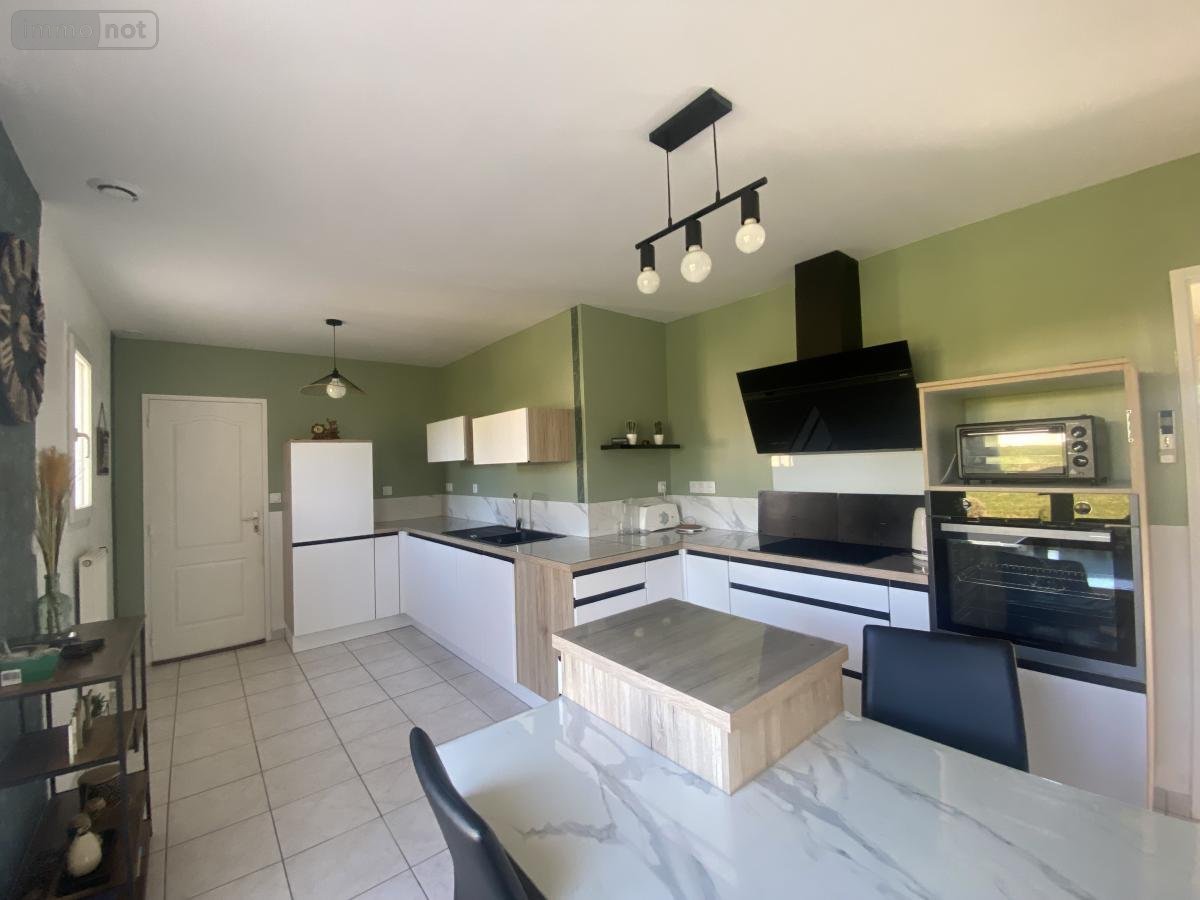 - au rez-de-chaussée : entrée avec montée d'escalier, dégagement, salon-séjour avec cheminée insert tubée, cuisine aménagée et équipée récente, une chambre avec placard, salle d'eau, WC,