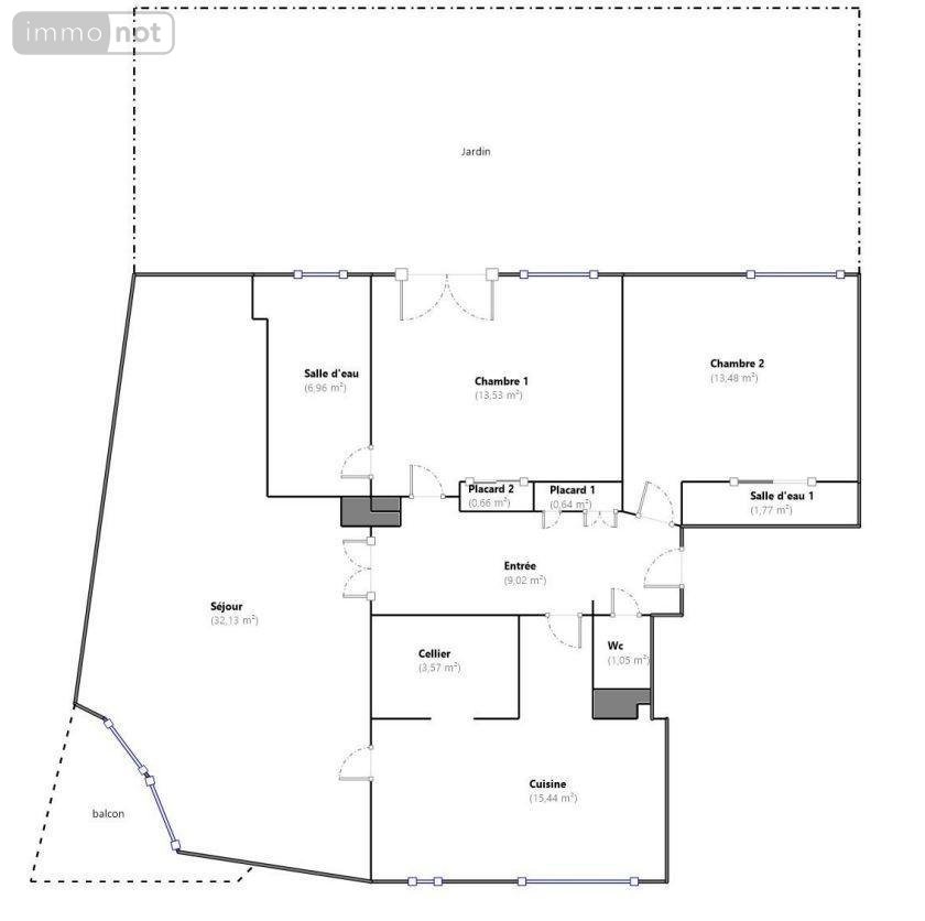 Une vaste entrée avec placards, une cuisine aménagée et équipée, un cellier-buanderie, un séjour traversant donnant sur une terrasse et un jardin, deux chambres avec salle d'eau privatives à chacune.