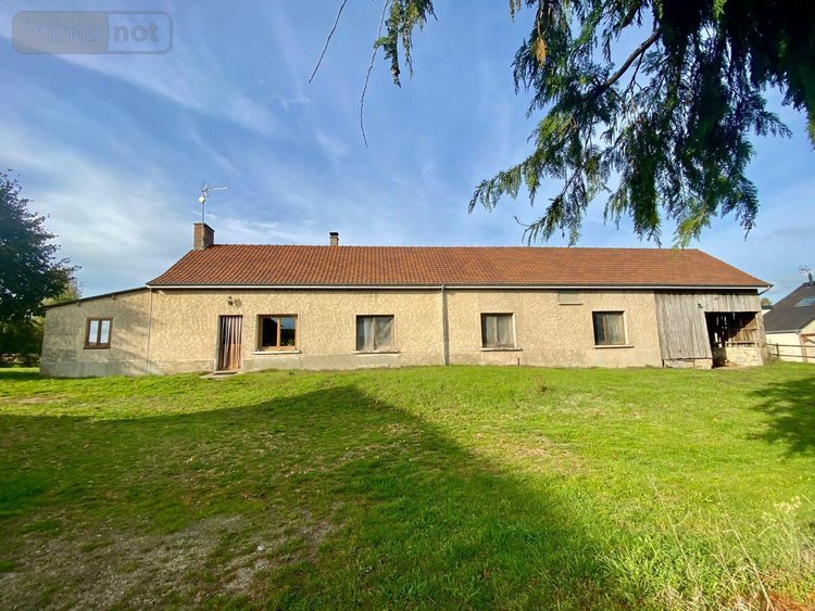 Longère de 105 M², comprenant : une entrée sur une salle à manger-cuisine, un salon, deux chambres, un wc, une salle de bains avec douche et baignoire, espace buanderie, cave.