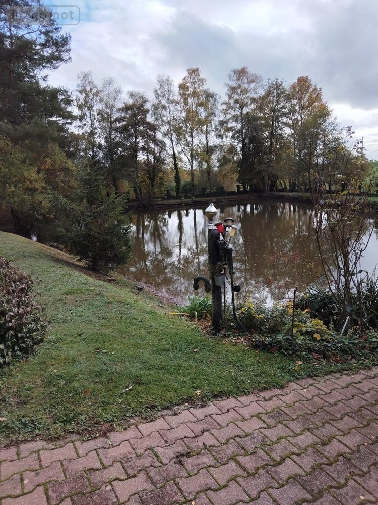 Deux parcelles comprenant un bâtiment à usage d'habitation avec pièce de vie et une chambre, un plan d'eau et un champ.