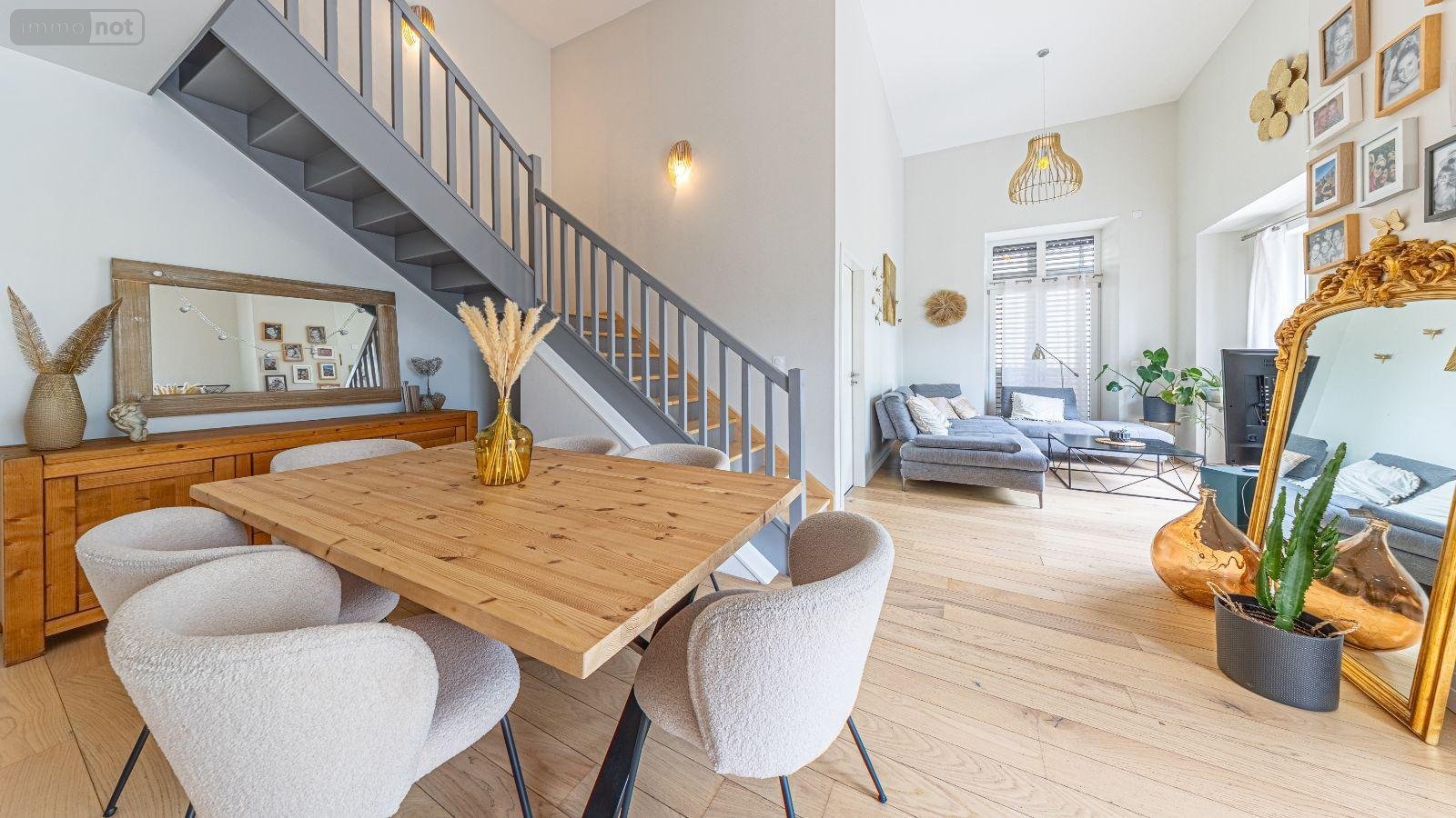 Au rez de chaussée : Un séjour avec accès à la terrasse et loggia, une chambre avec mezzanine, une cuisine équipée semi ouverte sur la salle à manger, une salle de bains et 1 WC.