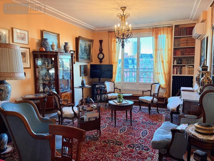 PARIS (17ème) - Métro Porte de Champerret - Dans un immeuble 1930, au septième étage par ascenseur, APPARTEMENT de 3 PIECES PRINCIPALES de 90,15 m², avec balcon filant de 11,10 m². L'appartement se compose d'une belle entrée ouverte sur le séjour (38,50 m²), une chambre avec accès à une salle d'eau et à un wc, une cuisine, une deuxième chambre avec accès à une salle d'eau avec wc. Vue complètement dégagée de la Tour Eiffel à la Défense. Double vitrage. Chauffage collectif. Gardien. Une cave complète ce bien. PRIX : 900.000 euros (ence compris les honoraires de négociation).
