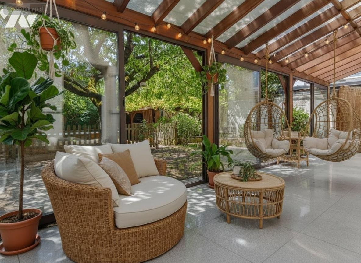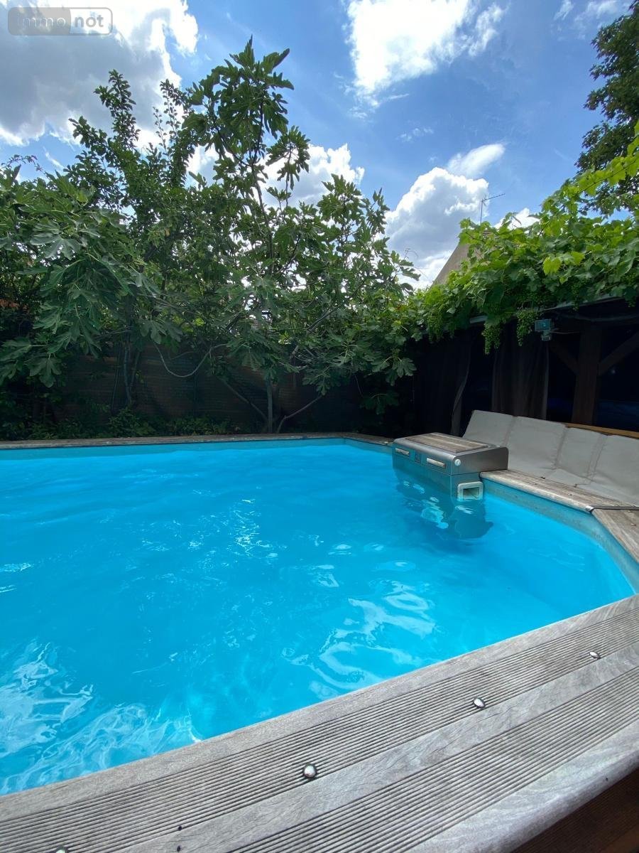Jardin paysagé avec véranda partiellement couverte (28m²) à l'arrière de la maison exposition SUD-OUEST. Arbres fruitiers (cerisier, figuier, Olivier etc). Belle piscine chauffée en fond de parcelle avec "pool-house" en bois.