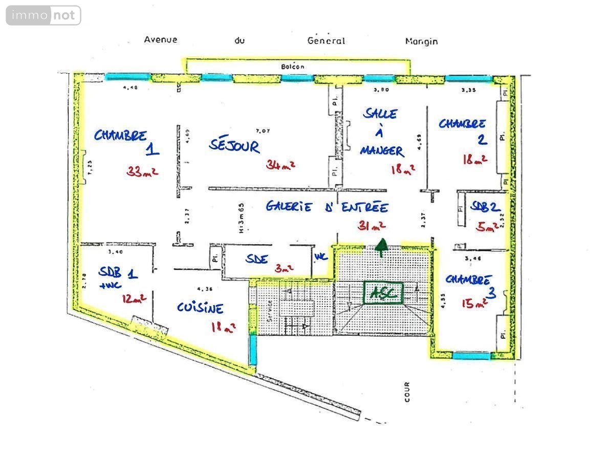 Exclusivité. Parc de Passy, rare sur le marché. Au sein d'un immeuble de 1926 parfaitement entretenu, dans un environnement verdoyant. Un bel appartement familial traversant de 5 pièces principales de 190,42,m² habitables (188,44m² loi Carrez) au 1er étage par ascenseur. Baigné de lumière, il est composé d'une galerie d'entrée, double-séjour (34m²) donnant sur un balcon, 3 chambres (entre 15 et 33m² avec possibilité 4ème), balcon sur le jardin de l'Ambassade de Turquie, salle à manger, 3 salles de bains, plusieurs WC et cuisine dinatoire. Nombreux rangements, fenêtres dans toutes les pièces.