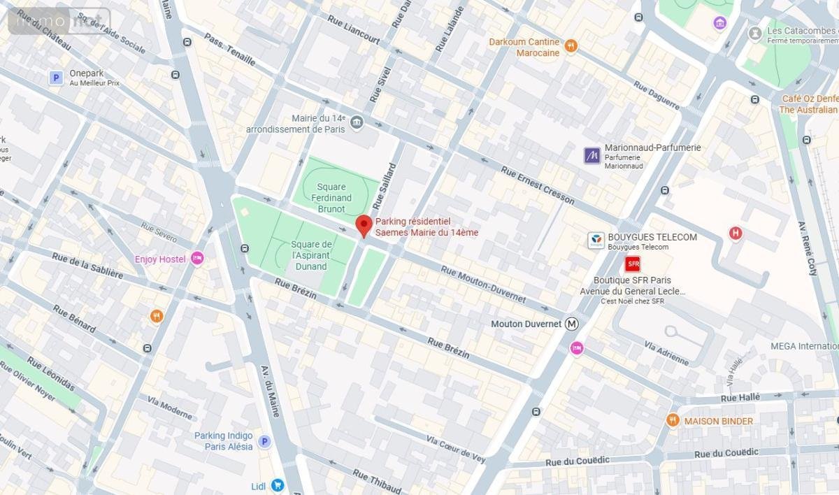 Exclusivité. Sous le Square Ferdinand Brunot / Face à la Mairie du 14ème arrondissement.. Au sein d'un parking récent sécurisé et très bien entretenu SAEMES, DEUX PLACES DE PARKING au 3ème sous-sol en demi-lune. Entrée et sortie par large rampe d'accès. Accès sécurisé par Vigick.