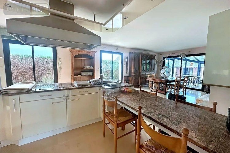 A VENDRE Maison individuelle de 1991, à BELBEUF (76520) T5 d'une surface habitable d'environ 160 m², édifiée sur une parcelle de 1169 m². Comprenant au rez-de-chaussée : entrée, dégagement, séjour/salon avec cheminée insert, cuisine ouverte aménagée et équipée, wc, une chambre parentale avec dressing, salle de bains et WC. Au 1er étage : un couloir desservant deux chambres, une salle de douche, wc. Au sous demi-niveau : buanderie, douche. Véranda. Jardin clos, dépendances avec charreterie. Garage deux voitures. Chauffage gaz. Cave. Jardin clos. Dépendances.
