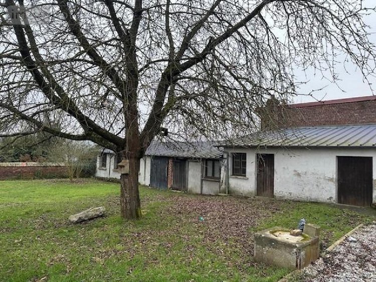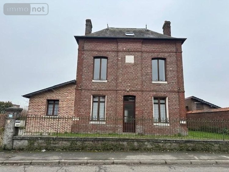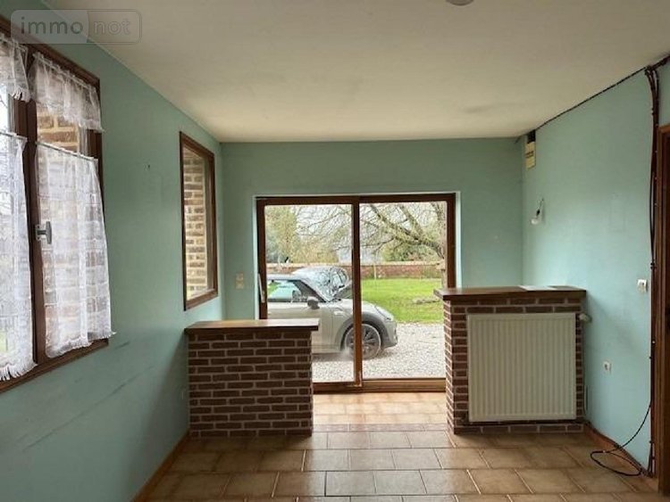 Maison à vendre à Mesnières-en-Bray en Seine-Maritime (76), comprenant : au rez-de-chaussée : entrée, buanderie, W.C., séjour/salon, cuisine. A l'étage : palier, deux chambres, salle de bains. Au deuxième étage : une pièce, un grenier. Bâtiments. Chauffage central au fuel et insert bois. Tout-à-l'égout. Jardin.