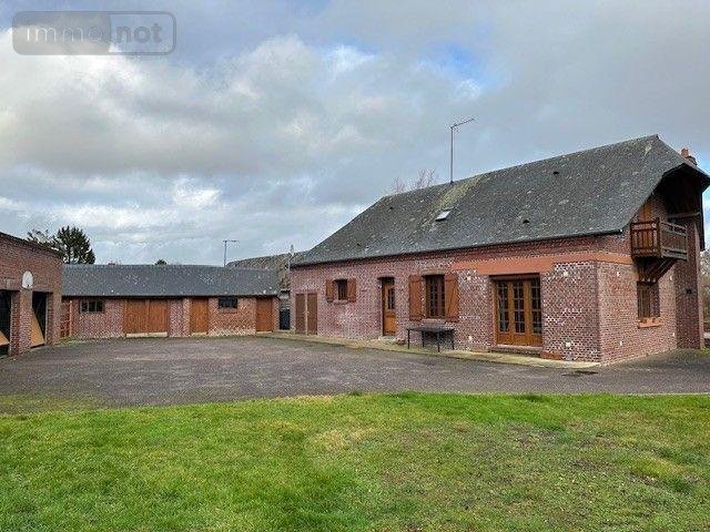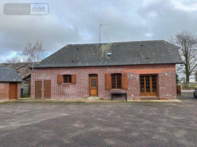 Maison à vendre à FRESNOY-FOLNY 76660 en Seine-Maritime, comprenant : au rez-de-chaussée : cuisine, séjour/salon avec insert bois, deux chambres, dégagement, W.C., salle de douche, cellier. A l'étage : deux chambres, salle de douche avec W.C. Sanibroyeur. Chauffage électrique et insert bois. Double vitrage ancien. Tout-à-l'égout. Bâtiment en briques. Grand bâtiment en parpaings. Cour en enrobé. Le tout sur un terrain de 1162m².