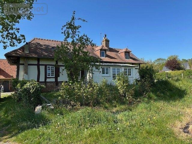 Maison à vendre à Mesnières-en-Bray (76270) en Seine-Maritime (76), comprenant : séjour avec cheminée, cuisine, salle de bains, W.C., salle à manger avec cheminée, couloir de distribution, deux chambres, pièce. A l'étage : grenier. Cave sous partie. Cour. Jardin. Le tout sur un terrain de 1812 m²