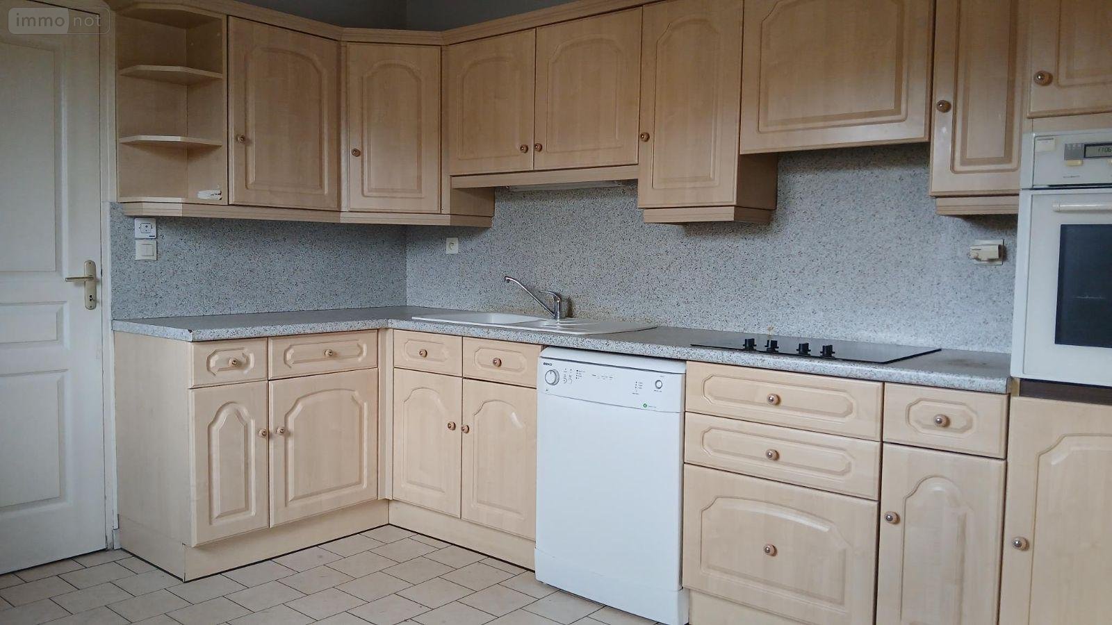 entrée semi-ouverte, séjour / salon avec cheminée insert, cuisine aménagée et équipée, chambre, salle d'eau, wc,