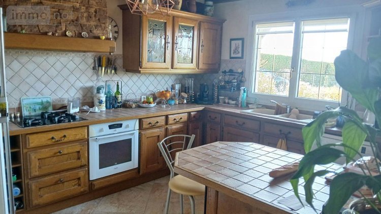 - au rez-de-chaussée : séjour / salon avec cheminée insert ouvert sur cuisine aménagée et équipée, salle d'eau, bureau, chaufferie, buanderie,