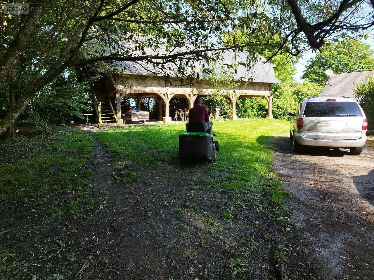 2°) une charretterie avec grenier aménagé comprenant une pièce principale avec cuisine et poële à granulés, une salle d'eau à rénover,