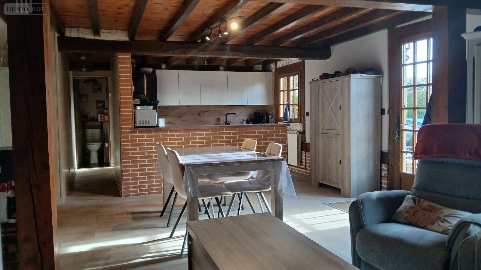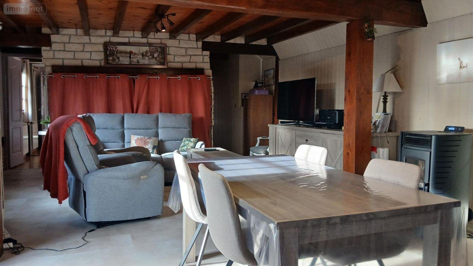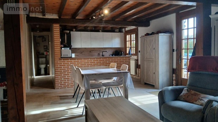 - séjour / salon avec poële à bois, cuisine aménagée et équipée ouverte sur séjour, chambre, salle d'eau, wc, pièce à usage de chambre,