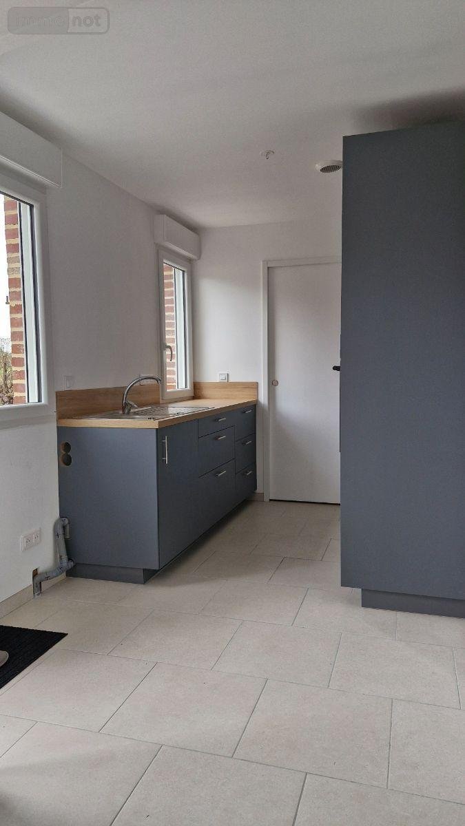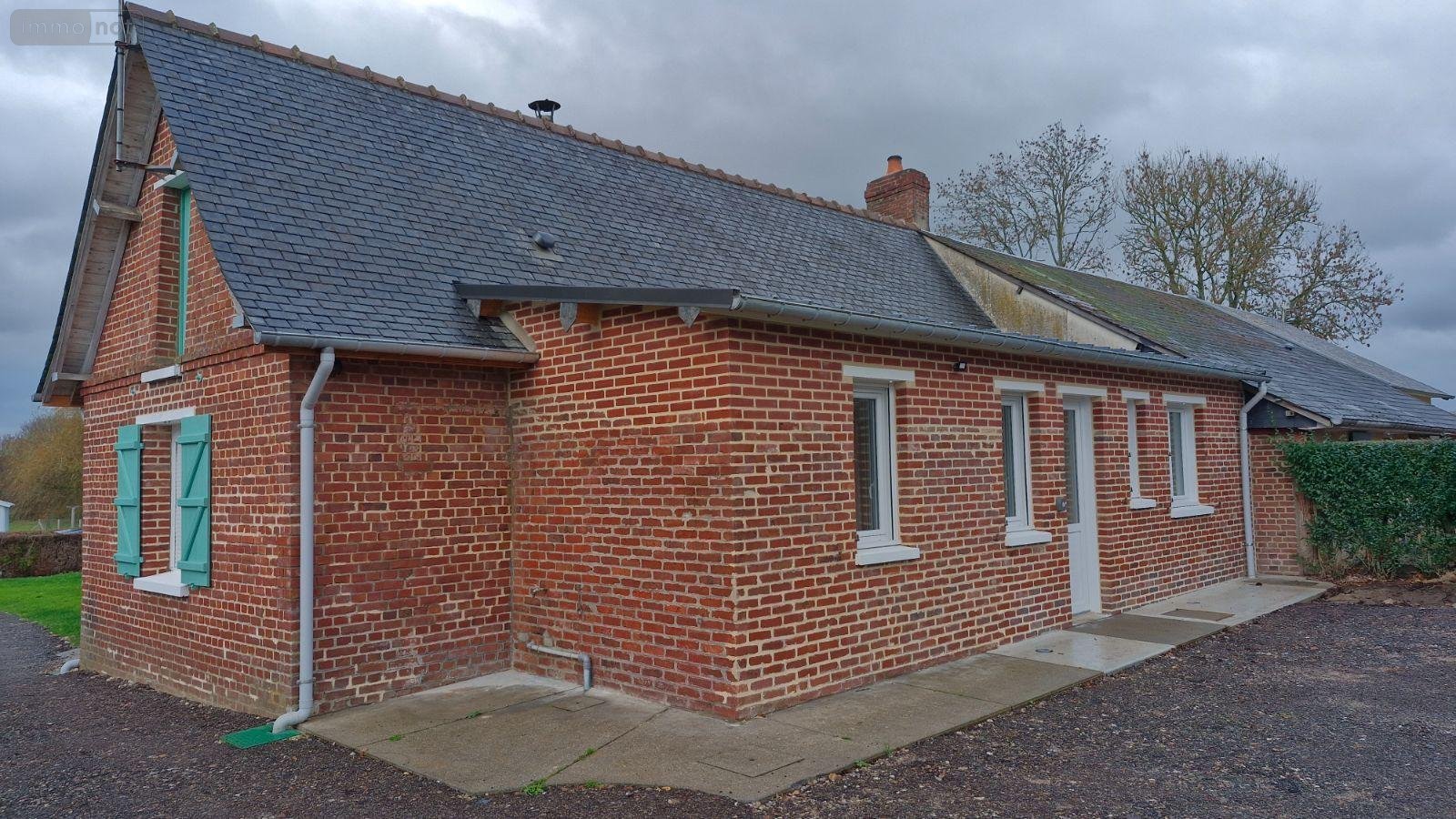 Maison en briques rénovée jumelée d'un côté de plain pied comprenant: cuisine aménagée et équipée, cellier, séjour, salle d'eau, W.C. indépendant, deux chambres.