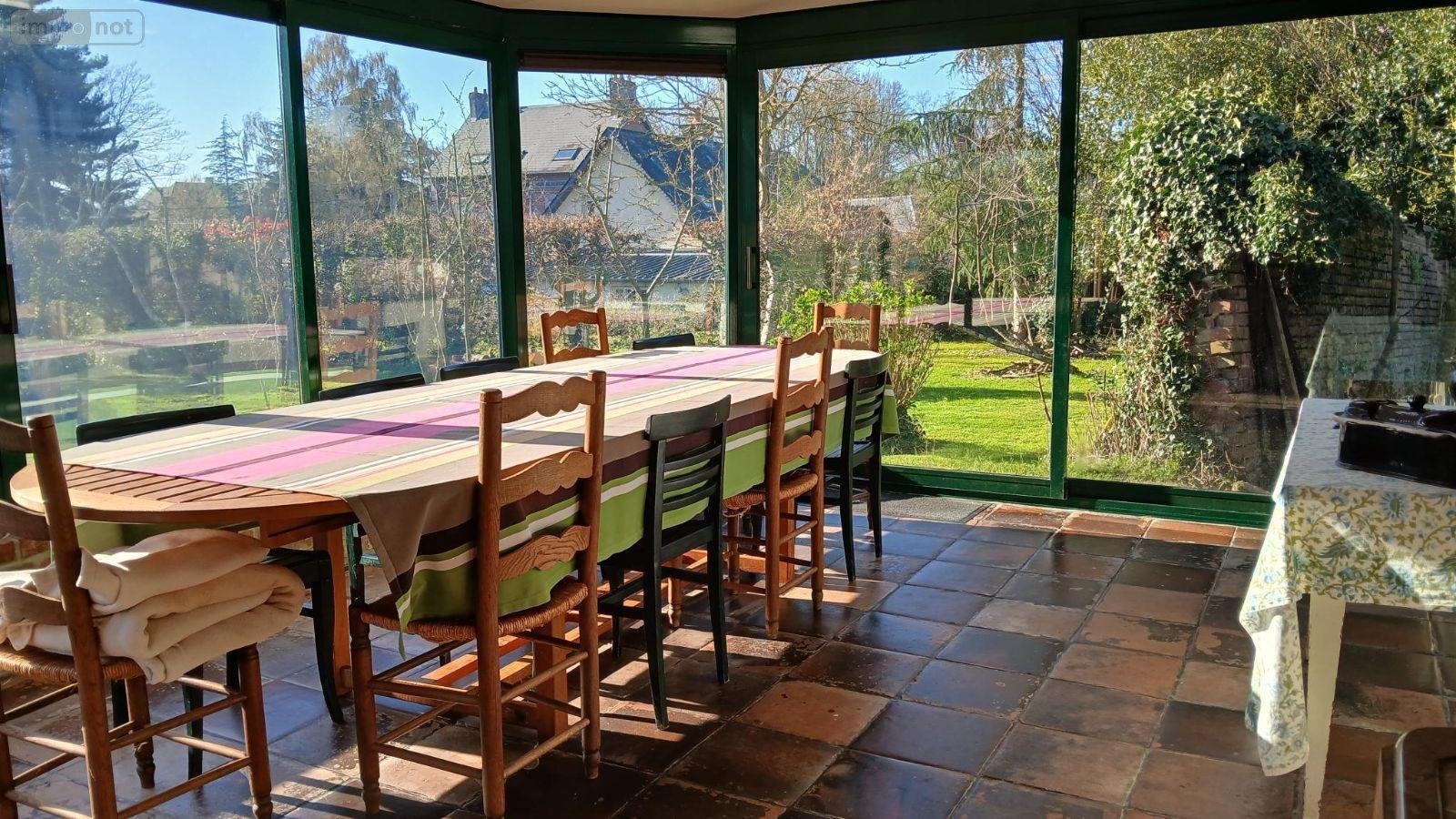 - au rez-de-chaussée : entrée, salon avec cheminée ouverte, cuisine aménagée, véranda, chambre avec salle d'eau privative,