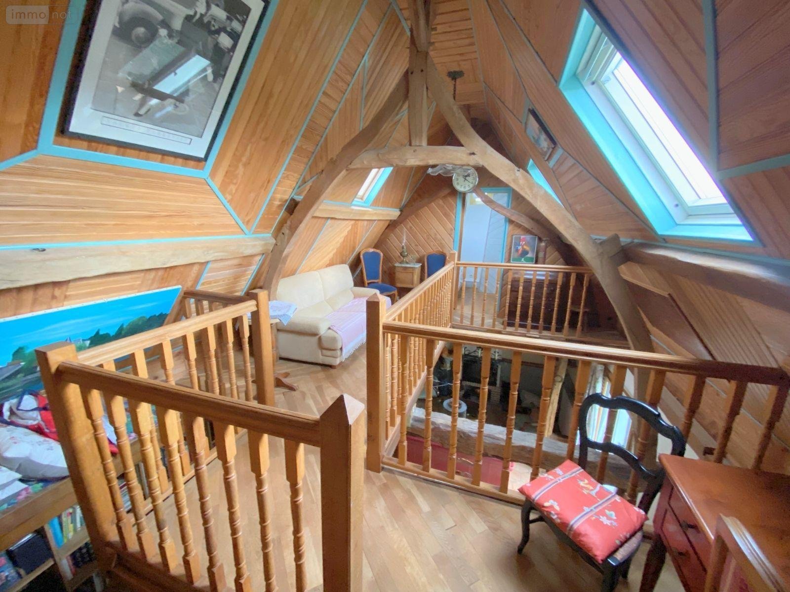 A l'étage : palier, 2 chambres dont 1 avec salle de douche et wc.