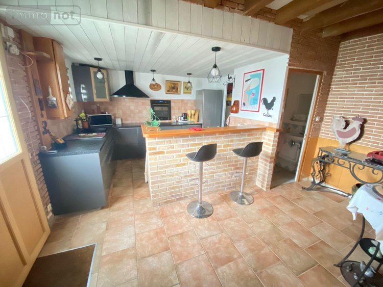MESNIL RAOUL - Maison individuelle entièrement rénovée en 2003, sur un terrain de 1100m², comprenant au rez-de-chaussée : Entrée, cuisine, séjour avec cheminée, wc.