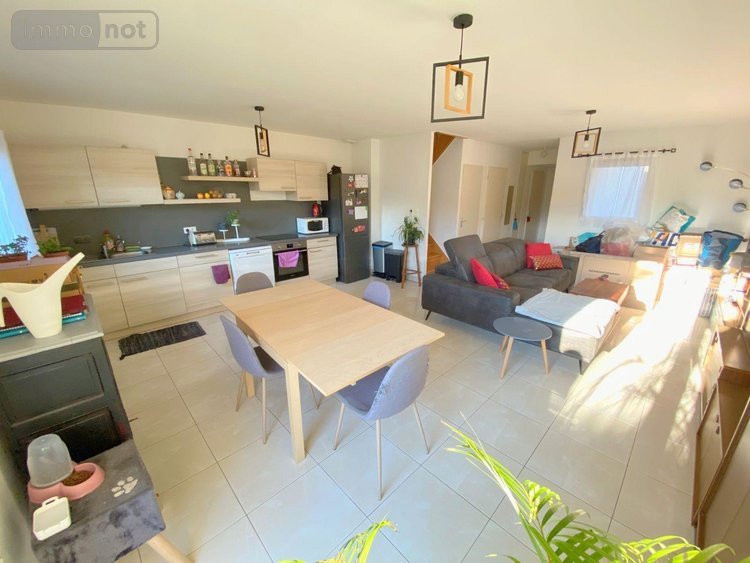 FRANQUEVILLE SAINT PIERRE - Centre - A proximité immédiate de la Mairie, des commerces et des lignes de bus (F5 et 13), maison de ville mitoyenne d'un coté, datant de 2011, comprenant au rez-de-chaussée : Entrée, pièce de vie de 36m² avec cuisine, wc.