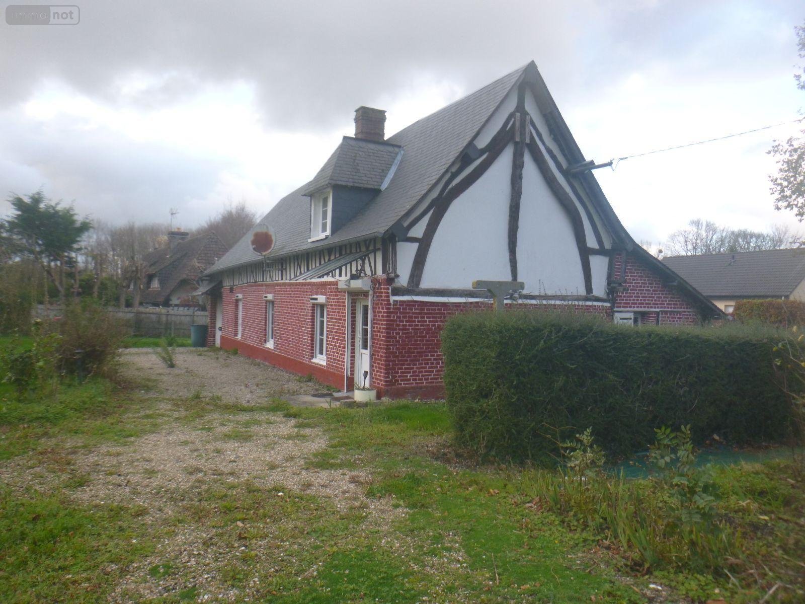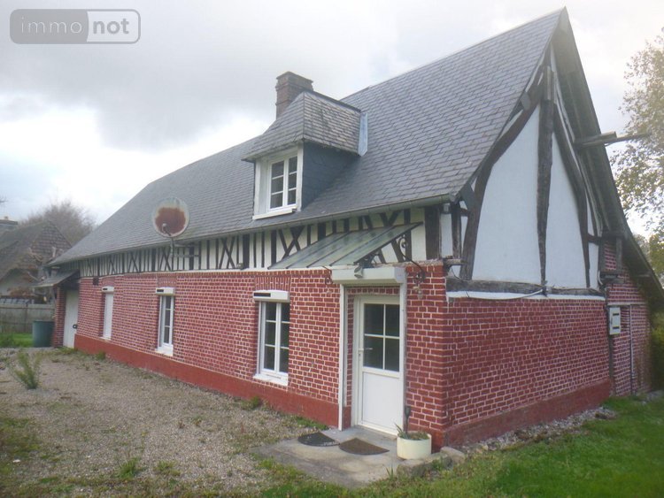 GONZEVILLE. Longère en briques comp. séjour, cuisine, 3 chambres dont 2 au RDC, SDB, WC. Grenier. Garage. Chauffage au fuel. Jardin.