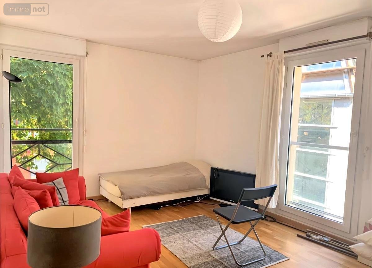 Entrée avec placards, cuisine aménagée et équipée, séjour/salon, une chambre avec placard, salle de bains (baignoire) et WC.